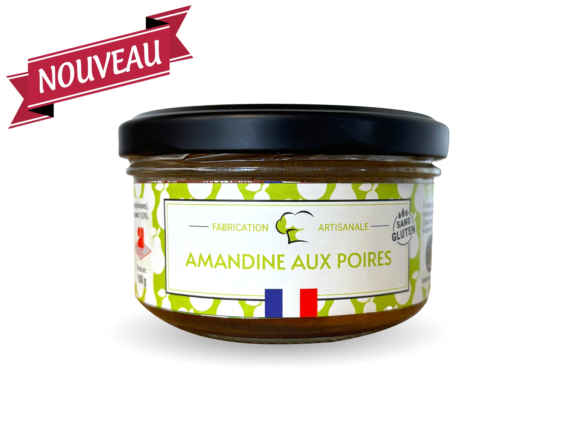 Crème UHT (crème, protéine de lait, carraghénanes), poudre d’amande (20,7%) (fruits à coques), sucre, poire (10,3%), œufs (10,3%), amidon de maïs, amande amère (0,4%) (fruits à coques).